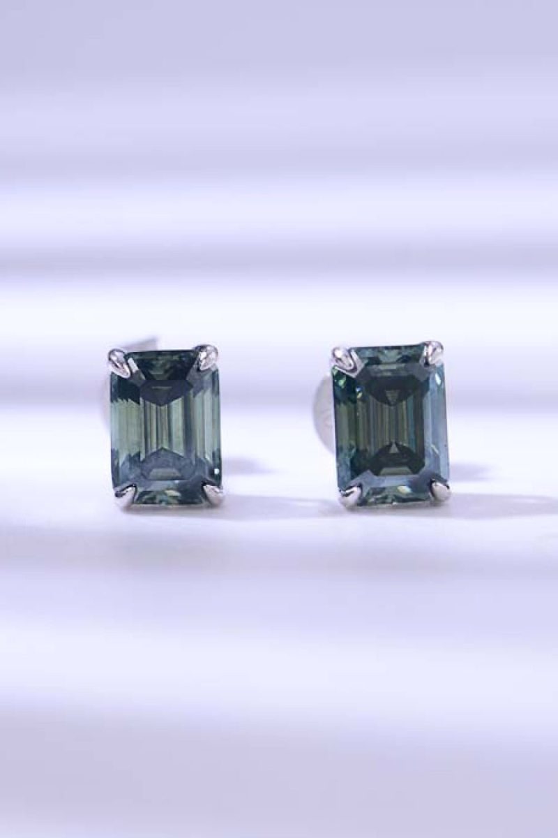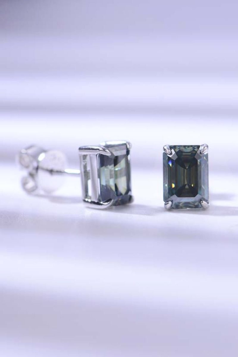 2 Carat Rectangle Moissanite 4-Prong Stud Earrings