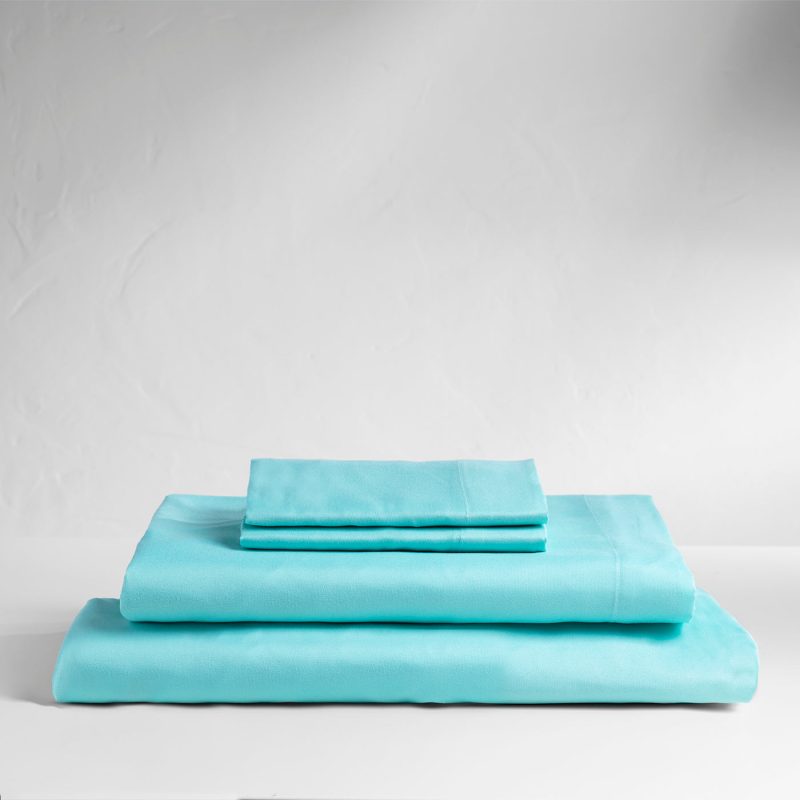 • Twin: flat sheet (66″ x 96″), fitted sheet (39″ x 75″ x 12″ pocket) and one pillowcase (21″ x 32“).