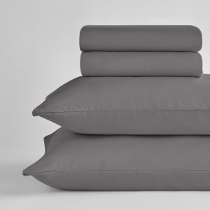 • Queen: flat sheet (90″ x 102″), fitted sheet (60″ x 80″ x 14″ pocket) and two pillowcases (21″ x 32″).