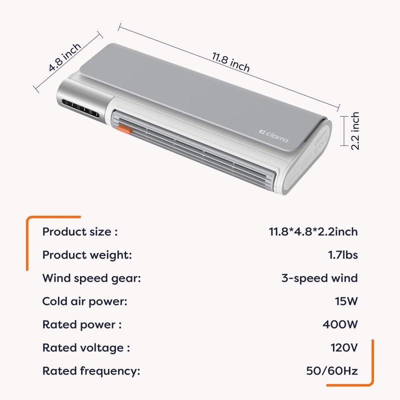 Ciarra 2-in-1 Heater & Fan | Ultra Slim, 3-Speed Wind Mode, Auto Shut-off, Anti-Scald Housing 数量