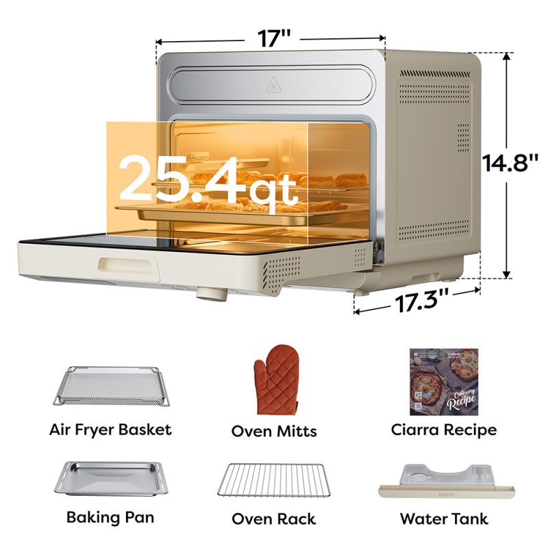 Ciarra Nosh Oven Pro | 12-In-1 Steam Oven With Air Fryer XL 1600 Watt Countertop Oven Toaster Oven 25.4QT CASO24-W 数量