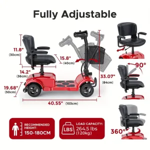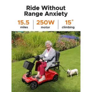 The ENGWE EASE1 four-wheeled mobility scooter features a 250W motor for a smooth, reliable ride both indoors and outdoors. With a 15.5-mile range, a 6.2 mph speed, and a 264.5-pound load capacity, it offers comfort and stability. The 24V 12AH battery ensures long-lasting power, while the easily foldable design makes storage and transport easy. Whether running daily errands or exploring the outdoors, the ENGWE EASE1 keeps you moving with ease.