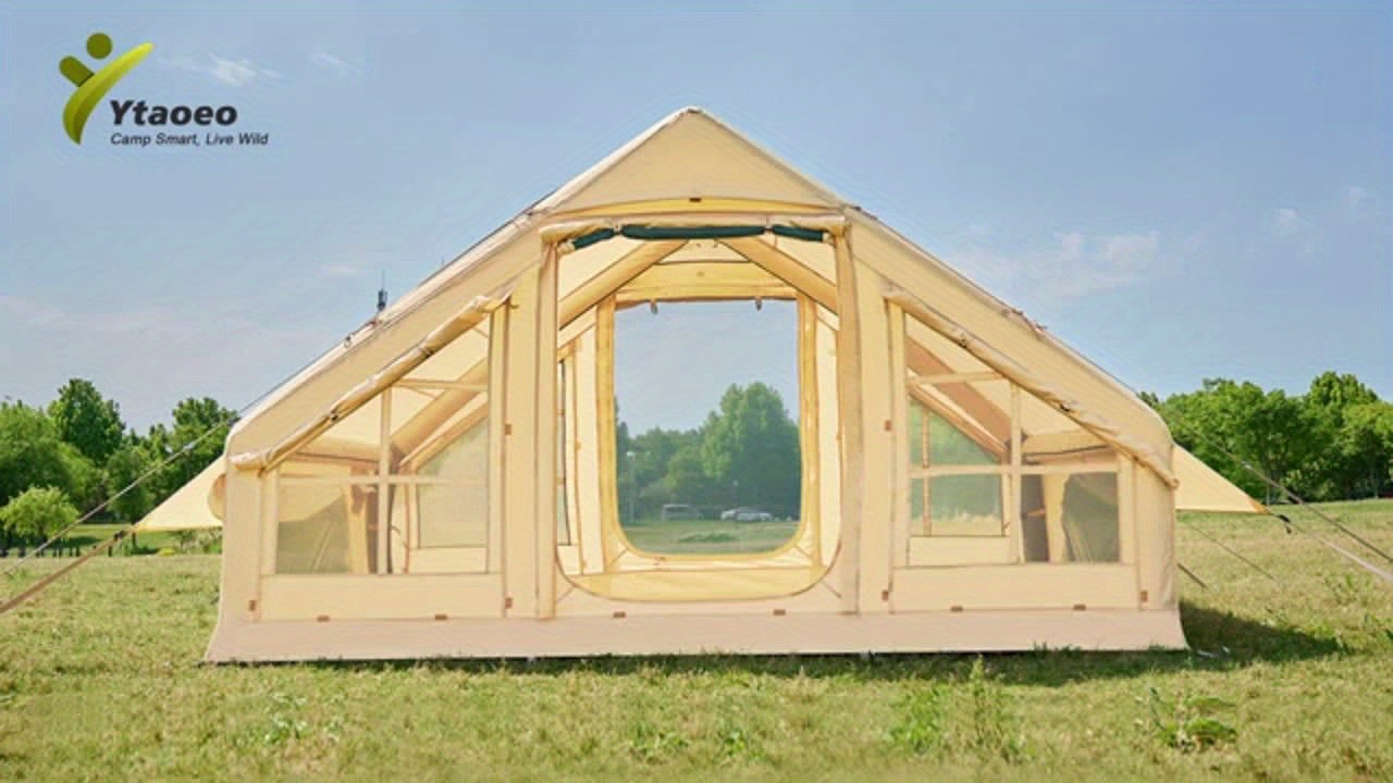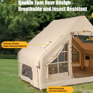 Durable & Weather-Resistant: Made with high-quality Oxford fabric, the canopy of this blow up air tent blocks harmful sunlight and has a waterproof rating of PU2000, keeping you dry during light rain. The windproof pegs and reflective guy ropes ensure security at night. The polyester cotton fabric offers comfort and breathability, preventing overheating.