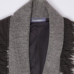 Most of the “Brush Tag” line by Issey Miyake was produced in the 1980s, primarily between 1982 and 1989. This era is characterized by the brand’s innovative approach to fashion, emphasizing the concept of “a piece of cloth,” which focuses on creating garments from a single piece of fabric. The clothing from this period often features experimental designs, unique silhouettes, and advanced fabric technologies, reflecting Issey Miyake’s commitment to blending traditional craftsmanship with modern innovation. The distinctive brushstroke logo symbolizes the brand’s dedication to artistic expression and its avant-garde aesthetic during the 1980s.