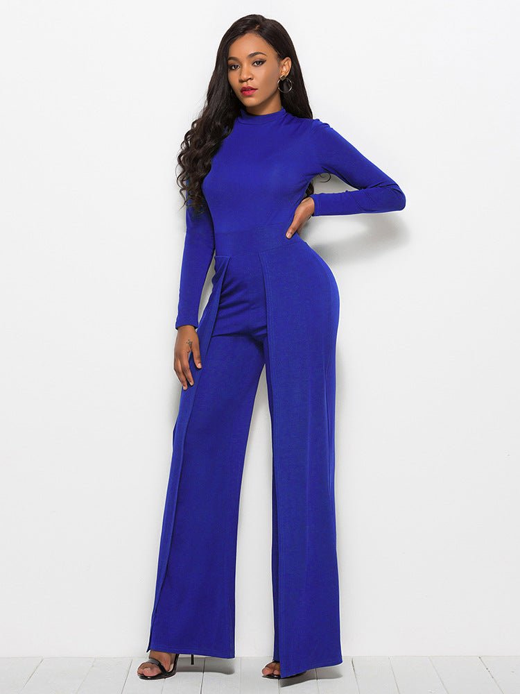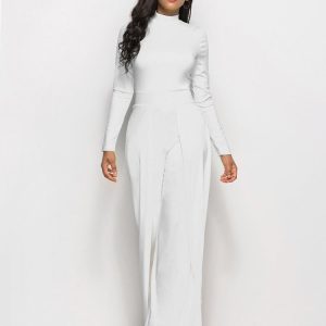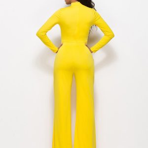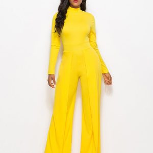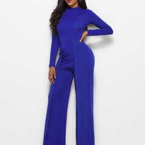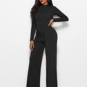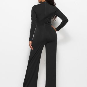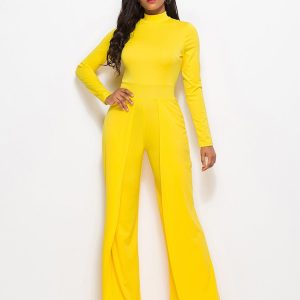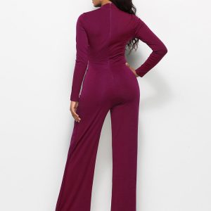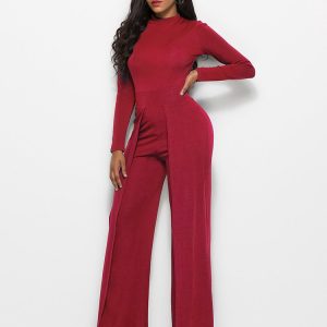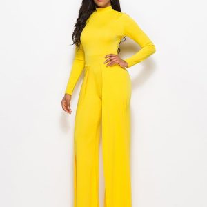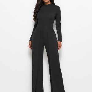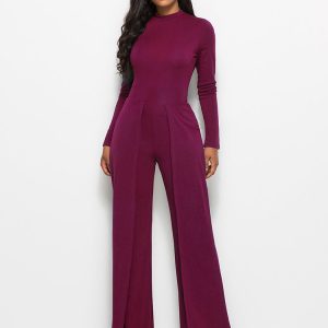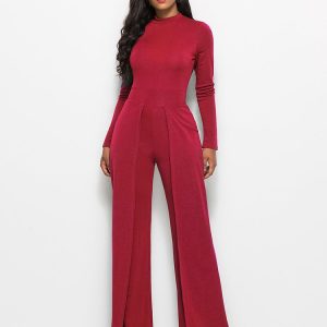 Long Sleeve Mock Neck Wide Leg Jumpsuit