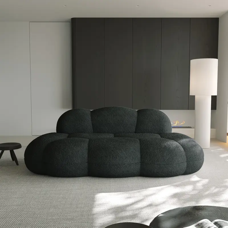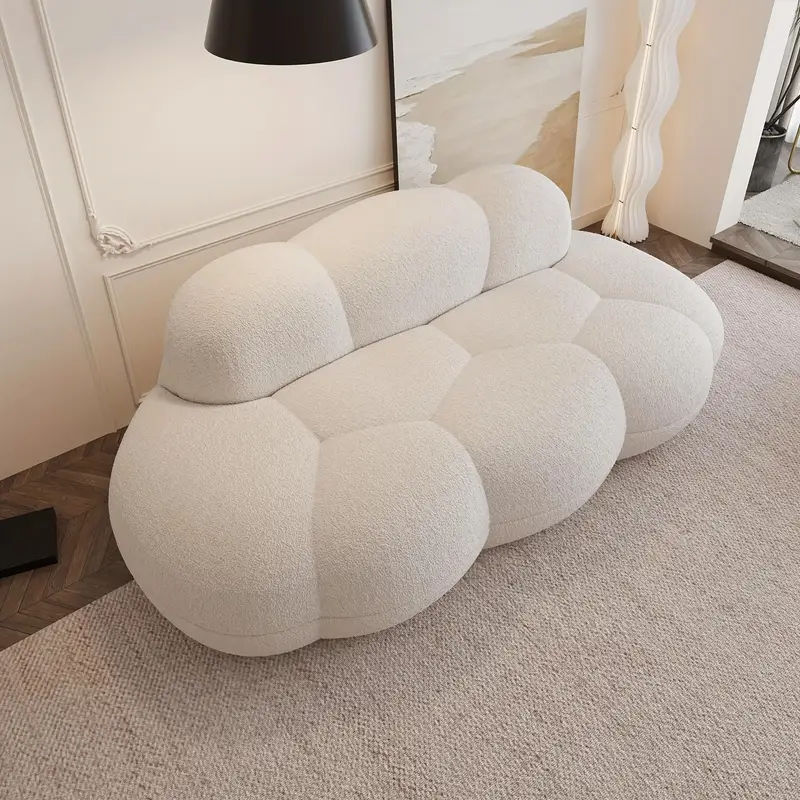 Modern curved cloud sofa, lazy floor sofa for living room, Bile 3-seater fabric double sofa, comfortable and casual frameless bedroom sofa, no assembly required sofa for apartment, bedroom sofa, frameless modular living room sofa, folding sofa, compressed design suitable for living room and apartment use, contemporary style sofa, curved shape, durable structure, fabric decoration, small and compact space-saving furniture, minimalist lifestyle small apartment living