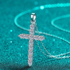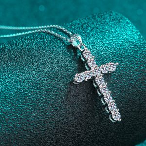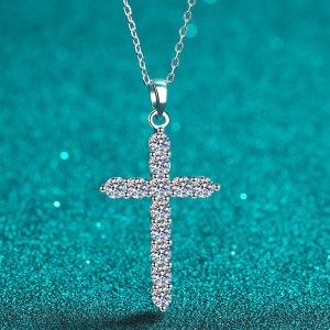 Moissanite Cross Pendant Chain Necklace