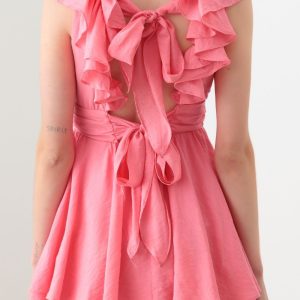Mustard Seed Tie Back Front Button Ruffled Romper