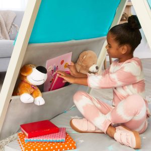 This starry-night themed Little Tikes Night Reading Nook gives your child a quiet space of their own for reading and relaxing. The cushioned reading-nook pad provides extra comfort for long reading sessions. There’s even a starlight projector that simulates the night sky, making it great for daydreaming, too! It includes a circular nook entrance, fabric wall, and book storage. This stylish wooden reading nook easily blends in with home décor.