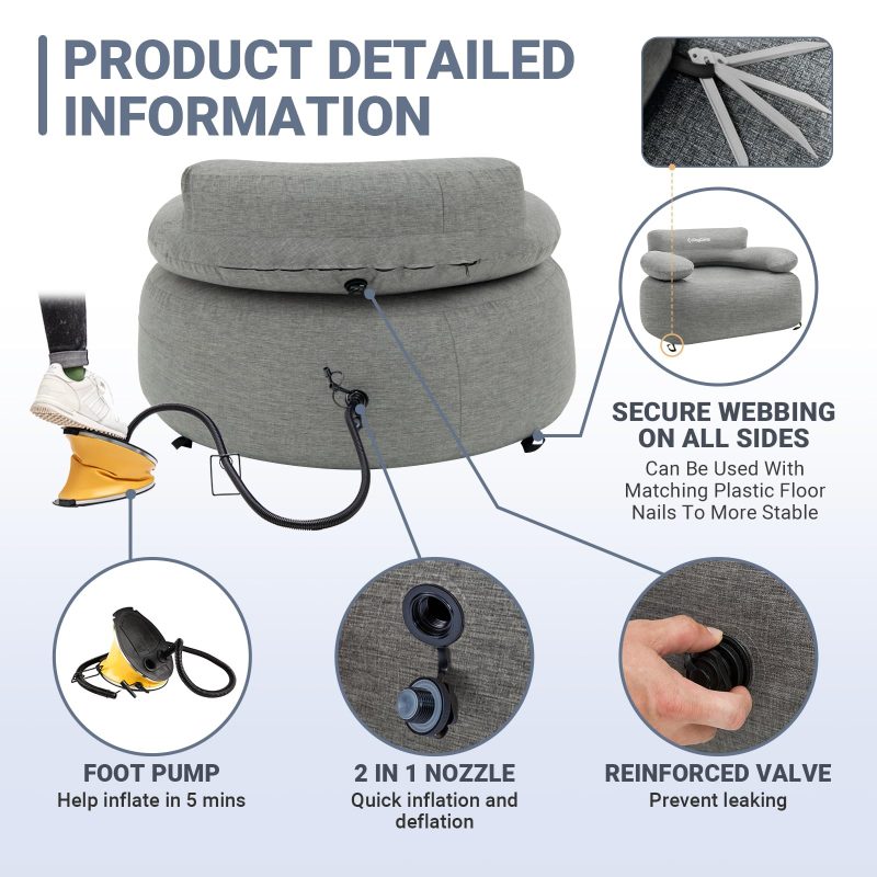 KingCamp Premium Single Inflatable Sofa Set / Grey