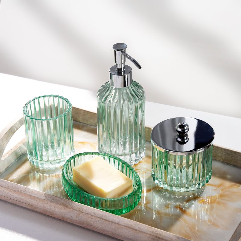4 Piece Seafoam Green Stoneware Bath Accessories Set