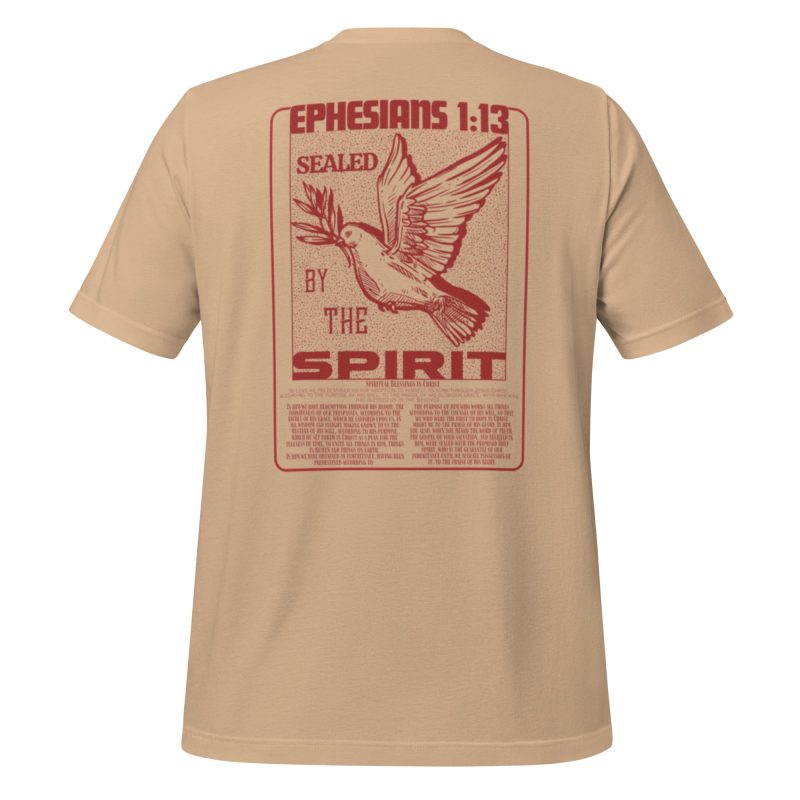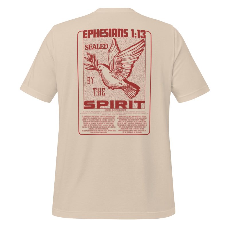 标签: apparel, bella canva, feature, Sealed by the spirit, tee