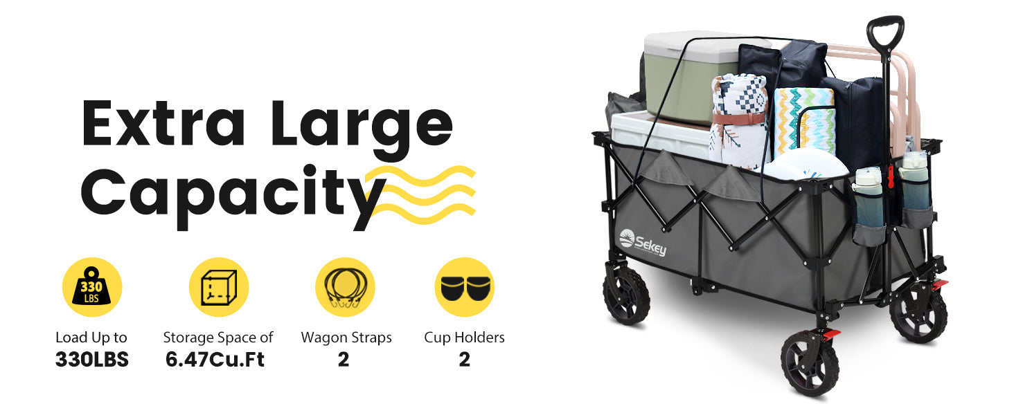 【𝐄𝐱𝐭𝐫𝐚 𝐋𝐚𝐫𝐠𝐞 𝐂𝐚𝐩𝐚𝐜𝐢𝐭𝐲】:Equipped with high quality heavy duty metal frame to load up to 𝟑𝟑𝟎𝐋𝐁𝐒 and possesses a much 𝐃𝐄𝐄𝐏𝐄𝐑 and 𝐄𝐍𝐋𝐀𝐑𝐆𝐄𝐃 storage space of 35.5″ L x 21.6″ W x 14.5″ H. The roomy internal volume and surprise loading capacity are both increased by 𝟖𝟎% than other wagons overall. Two mesh cup holders beverages safe and sound.