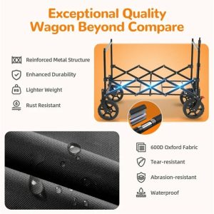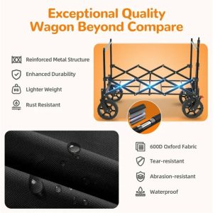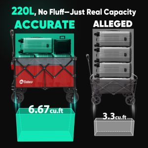 Sekey 220L Collapsible Foldable Wagon with 330lbs Weight Capacity, Heavy Duty Folding Wagon Cart with Big All-Terrain Wheels & Drink Holders.