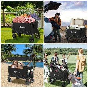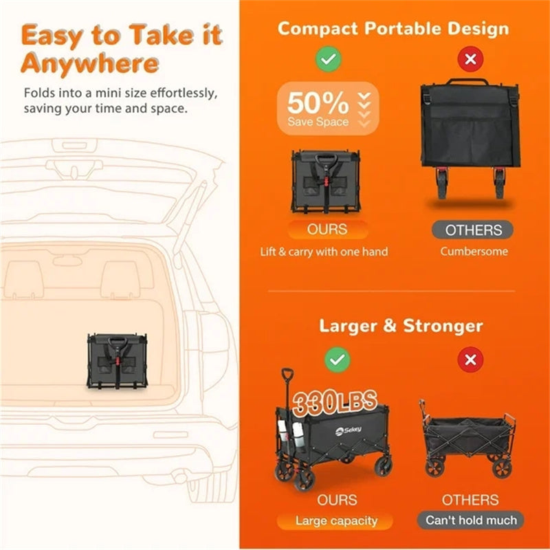 Sekey 220L Collapsible Foldable Wagon with 330lbs Weight Capacity, Heavy Duty Folding Utility Garden Cart with Big All-Terrain Beach Wheels & Drink Holders.