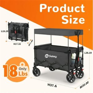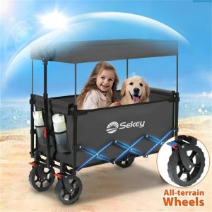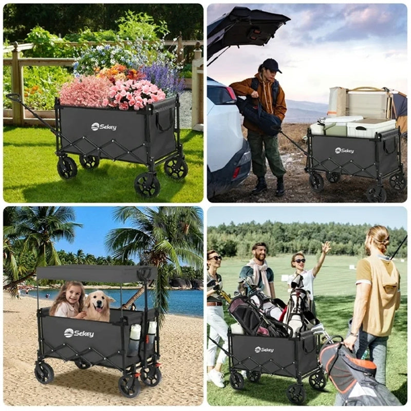 Sekey 330lbs Collapsible Folding Wagon with Removable Canopy, Upgraded 20% Thicker Steel Pipes Outdoor Utility Wagon