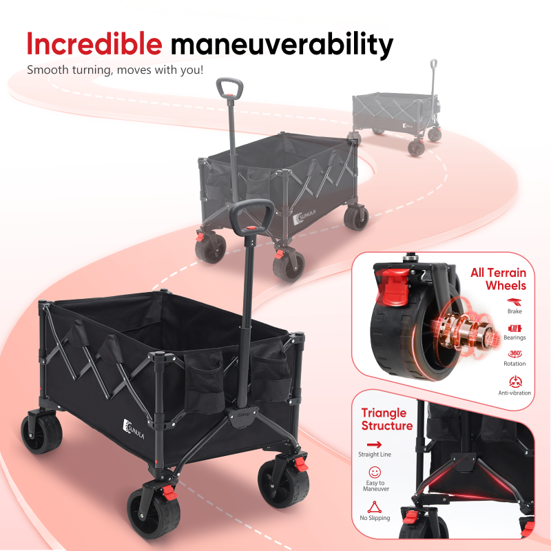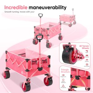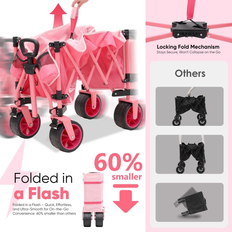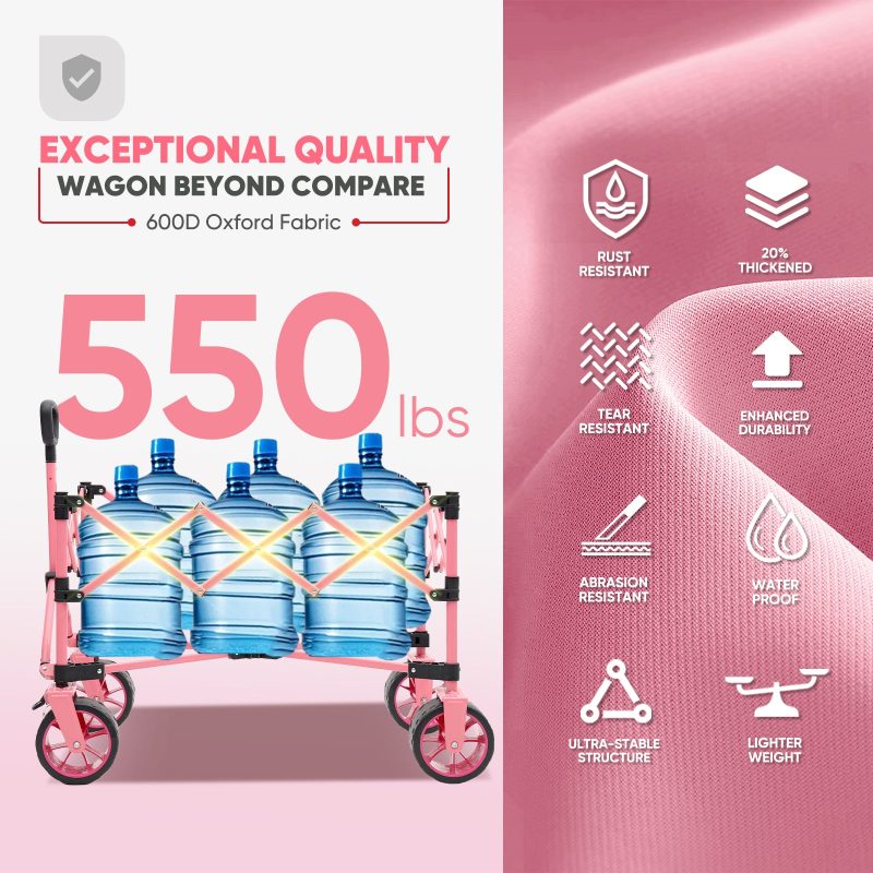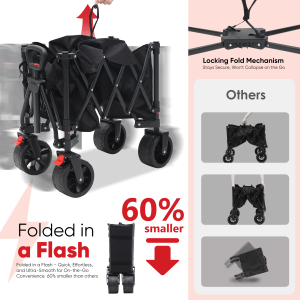 Sekey 330lbs 220L Collapsible Beach Wagon, Foldable Wagon Cart, Heavy Duty Folding Utility Cart Wagon with Big All-Terrain Wheels Grocery Wagon for Camp, Garden, Sport, Shop