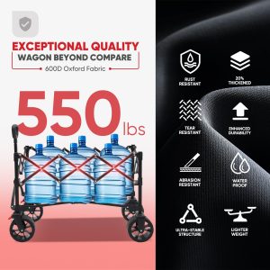 Sekey 550LBS Collapsible Foldable Wagon 300L Weight Capacity Heavy Duty Folding Utility Garden Cart with All-Terrain Wheels & Drink Holders for Beach Shopping Camping Grocery Sport Outdoor