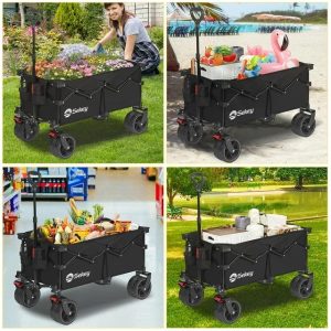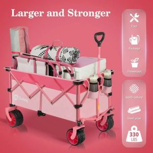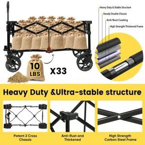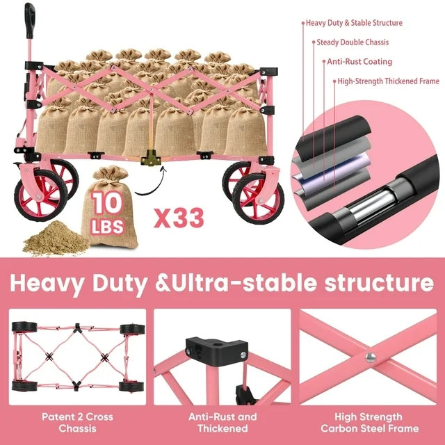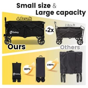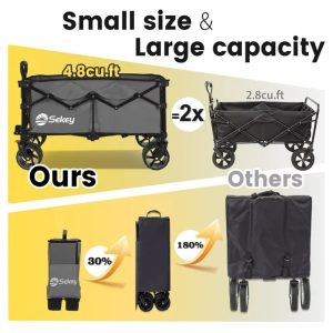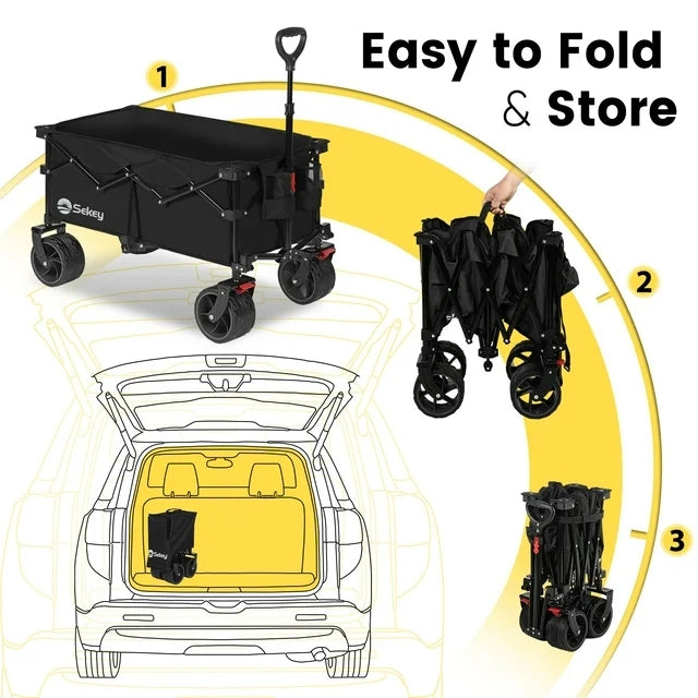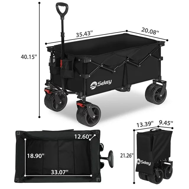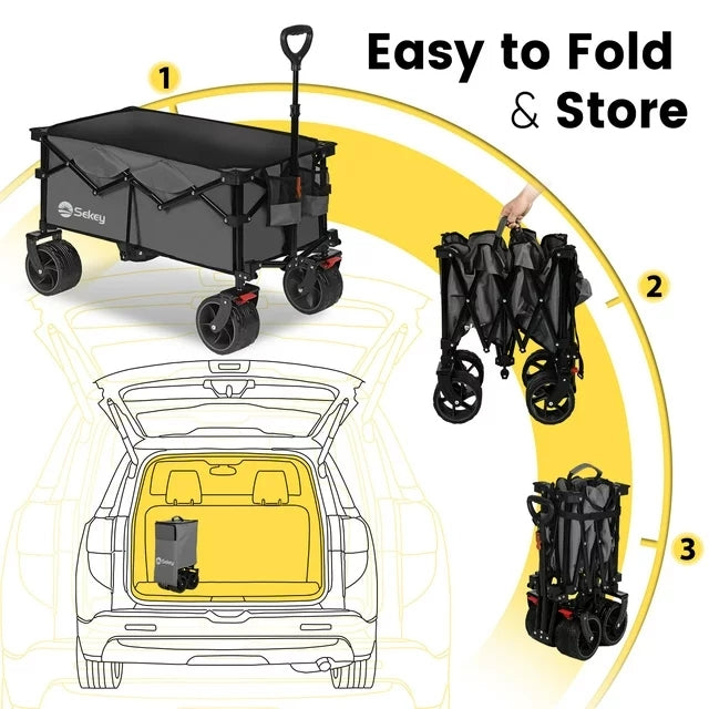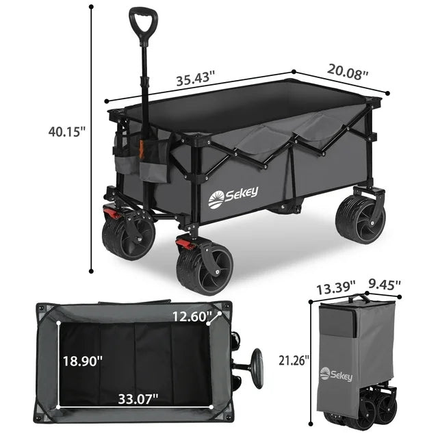 Sekey 330lbs 220L Collapsible Beach Wagon, Foldable Wagon Cart, Heavy Duty Folding Utility Cart Wagon with Big All-Terrain Wheels Grocery Wagon for Camp, Garden, Sport, Shop