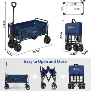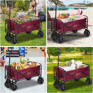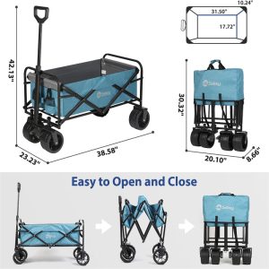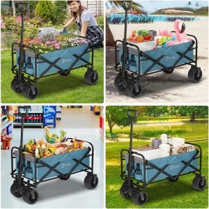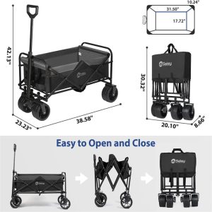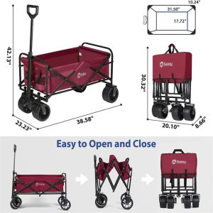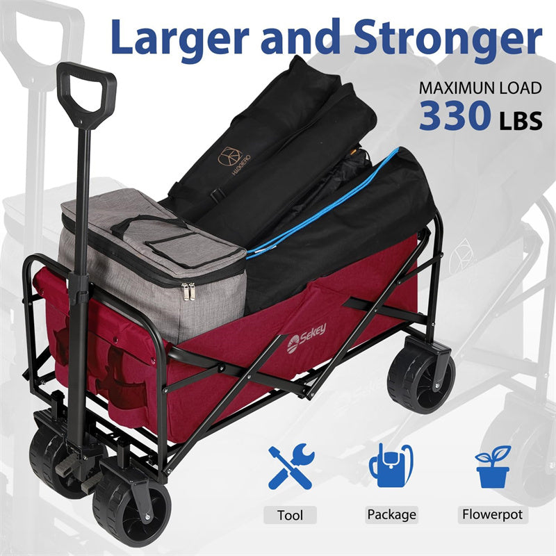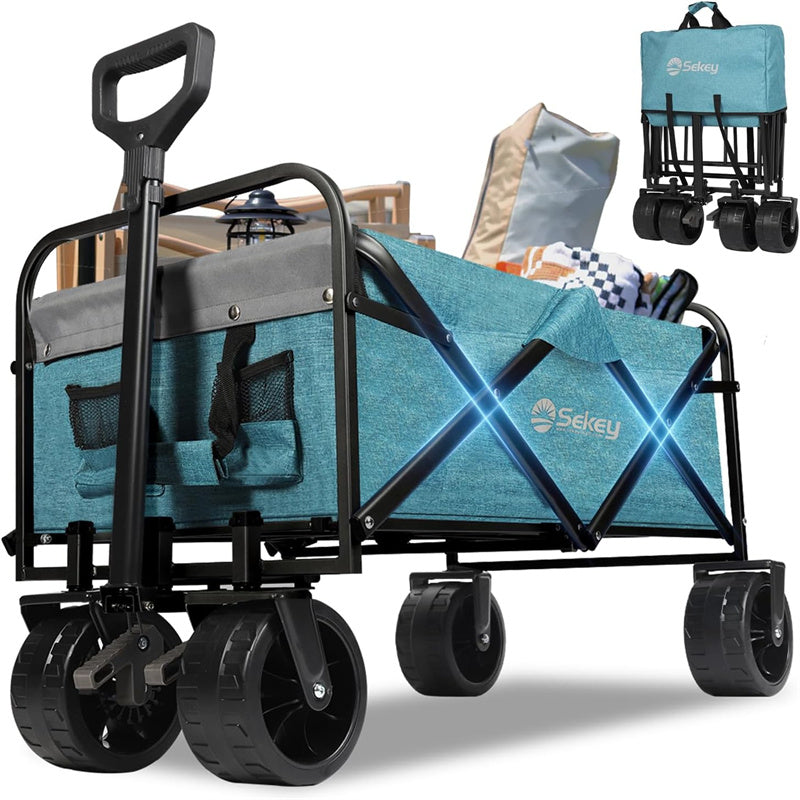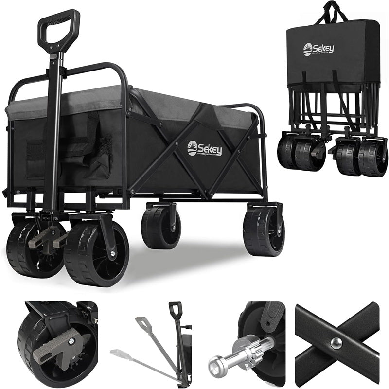 Sekey Heavy Duty Foldable Wagon with 220lbs Weight Capacity, Collapsible Folding Utility Garden Cart with Big All-Terrain Beach Wheels & Drink Holders.