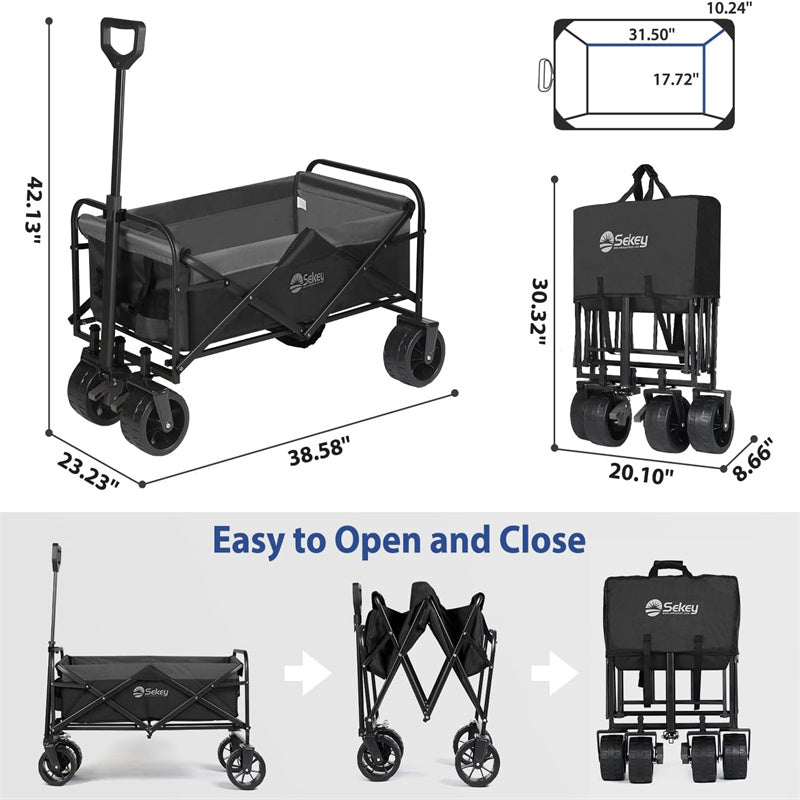 Sekey Heavy Duty Foldable Wagon with 220lbs Weight Capacity, Collapsible Folding Utility Garden Cart with Big All-Terrain Beach Wheels & Drink Holders. 数量