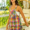 BiBi Bleached Vintage Plaid Wide Leg Overalls with Pockets