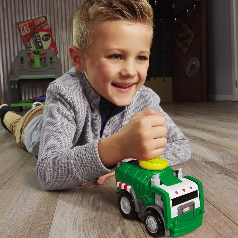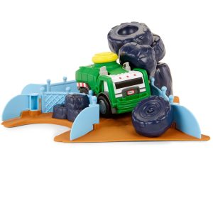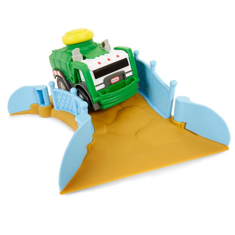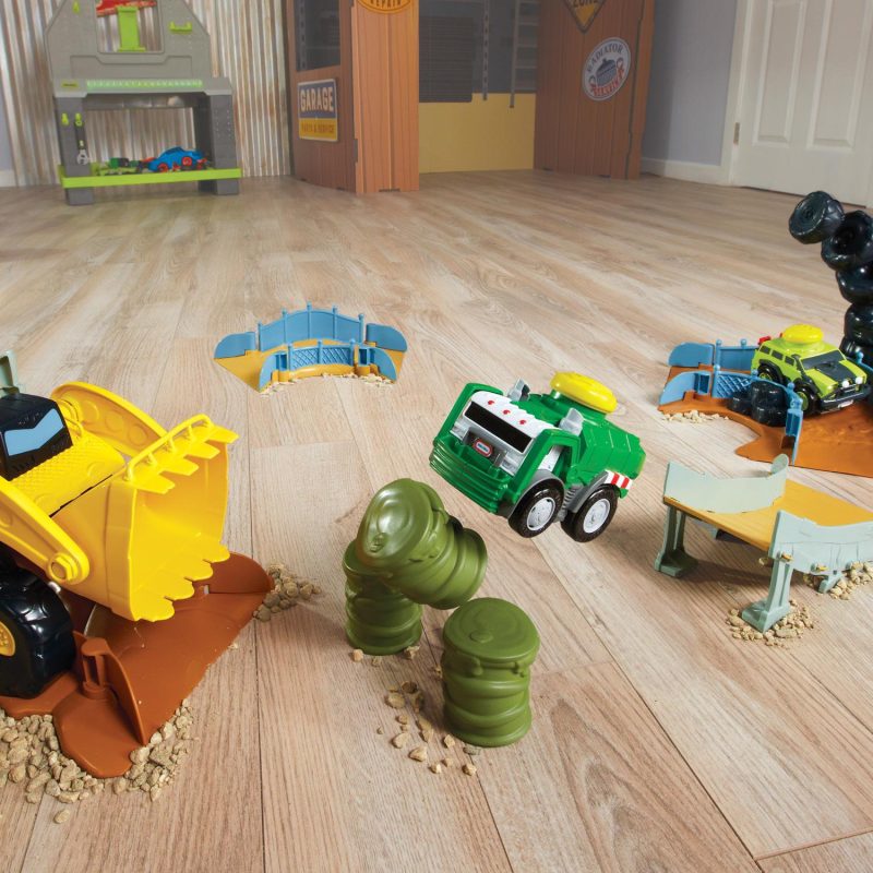 Kids are part of the race with the Slammin’ Racers Scrapyard Derby. Slam the top of the Garbage Truck and race it to the finish line or see how high it can jump and how many barrels it can knock down.