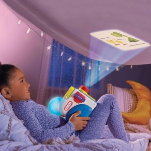 The Story Dream Machine develops beginning reading skills as children see and hear words and can read along with the narrator as the words and images shine brightly on the wall. Kids will be delighted as they watch colorful lights and listen to sound effects.