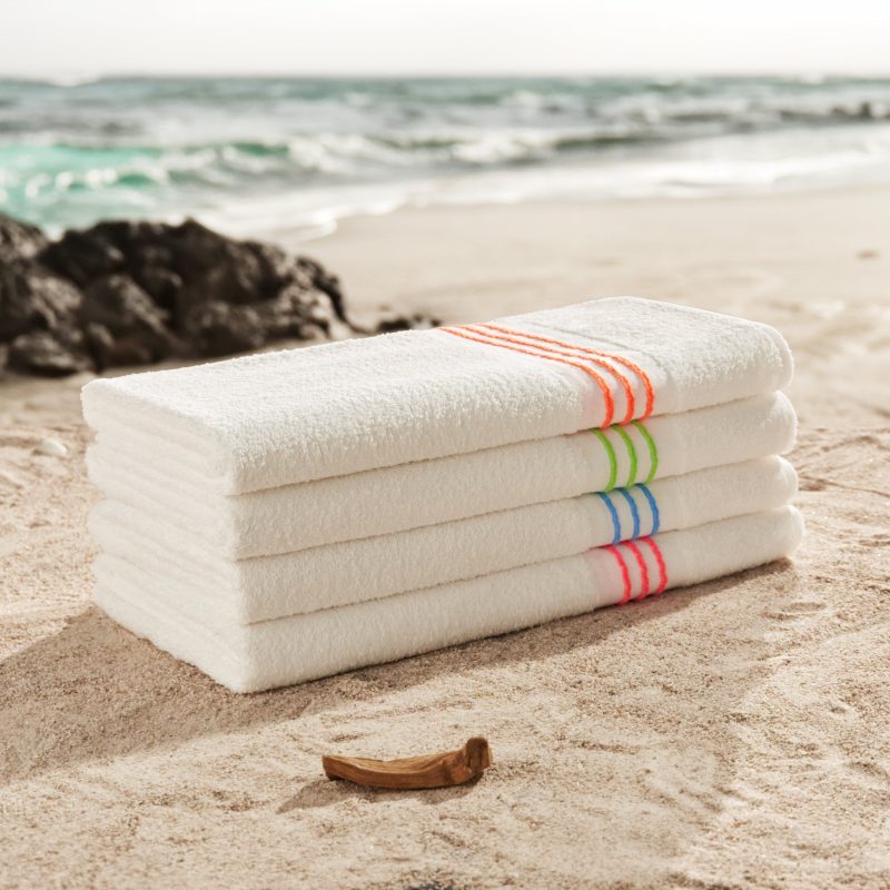 Indulge in luxurious comfort with our extra plush best pool towel, adorned with vibrant neon stripes in cheerful shades of blue, orange, green, yellow, or pink along its borders. This resort-style beach towel is the ultimate summer companion, designed for your beach and poolside adventures. Crafted from 100% cotton, it offers a soft and cozy touch, while its durable construction ensures long-lasting quality. And when it’s time for cleaning, simply toss it in the washing machine for easy care.