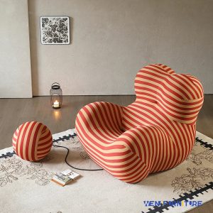 Replica La Mamma Armchair & Ottoman UP 5 And UP 6 | Red and Beige Stripe Fabric