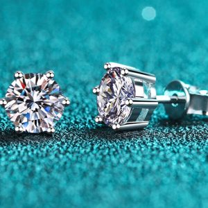925 Sterling Silver 6-Prong 2 Carat Moissanite Stud Earrings