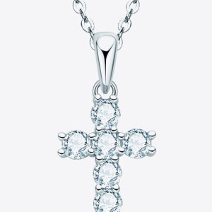 925 Sterling Silver Cross Moissanite Pendant Necklace