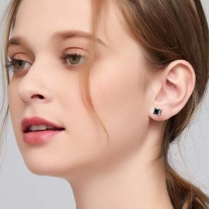 925 Sterling Silver Inlaid 2 Carat Moissanite Square Stud Earrings