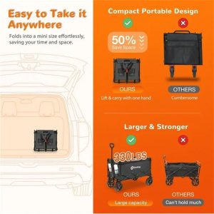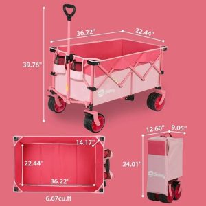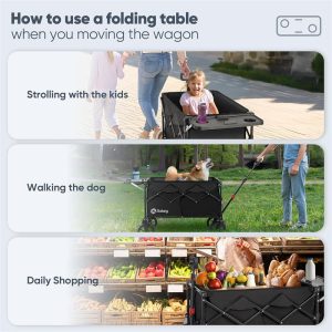 Sekey 250L Collapsible Wagon with Folding Table and Drink Holders, Foldble Beach Wagon with All-Terrain Wheels Load up to 330LBS for Shopping, Camping, Sports.