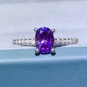1 Carat Moissanite Heart-Shaped Platinum-Plated Ring in Purple