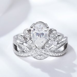 1 Carat Moissanite Heart-Shaped Platinum-Plated Ring in Blue